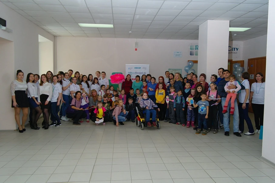 Зажигательный флешмобс элементами музыкотерапии, организованный студентами-волонтерами, позволил детям и взрослым выразить себя и своё настроение в танце.