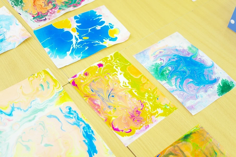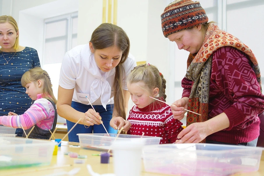В «Art-мастерской сознания» благодаря Натальи Бакулиной, кандидату культурологии, доцента кафедры теории и методики начального и дошкольного обучения семьи получили сеанс акватерапии с использованием необычной техники изобразительного искусства ЭБРУ.