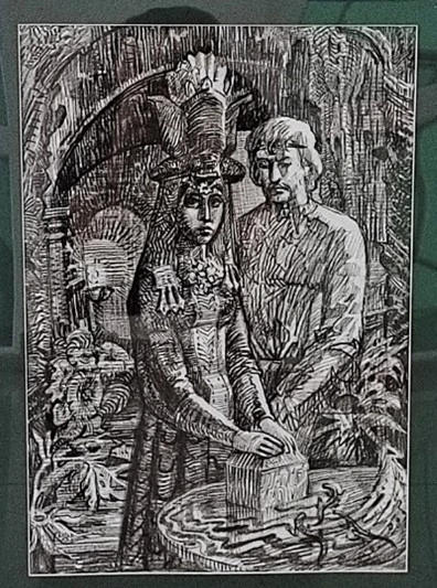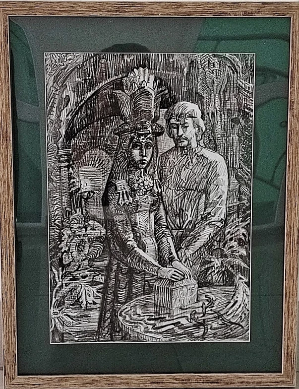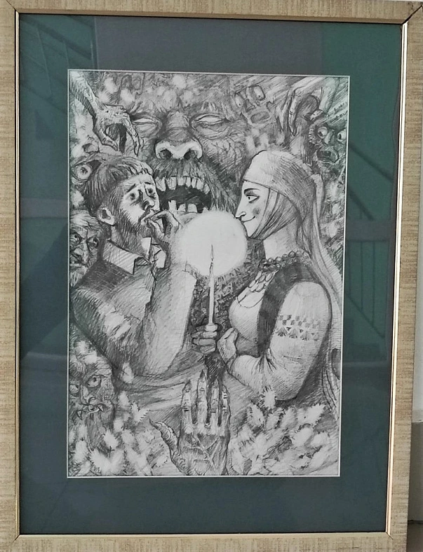Настоящая экспозиция представлена студенческими работами нашего выпускника по теме «Создание художественного образа в книжной графике»: иллюстрации к мистической повести Н. В. Гоголя «Вий» и книге П. П. Бажова «Уральские сказы».